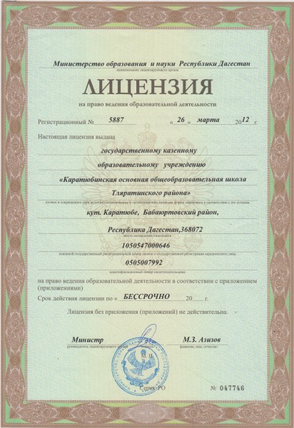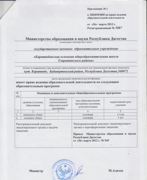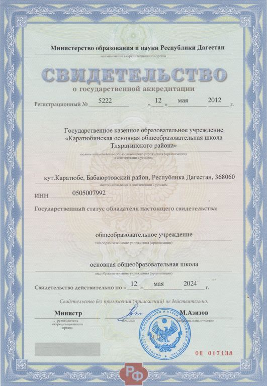 | Полное наименование образовательной организации* | Государственное казенное общеобразовательное учреждение Республики Дагестан "Каратюбинская основная общеобразовательная школа Тляратинского района" |